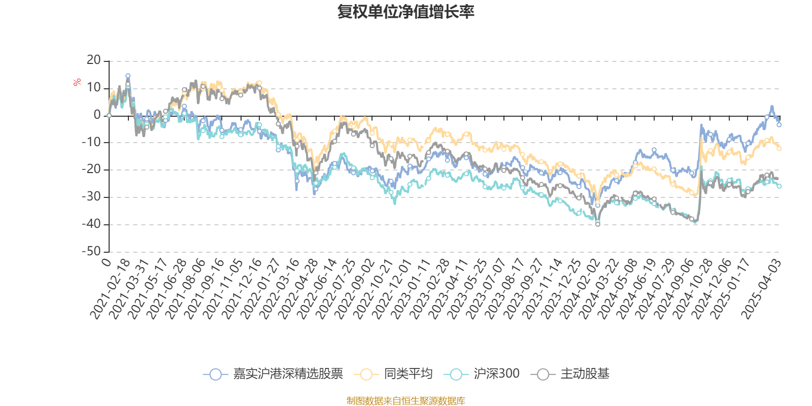 截至4月3日,嘉实沪港深精选股票近三个月复权单位净值增长率为6.85%,位于同类可比基金36/74;近半年复权单位净值增长率为2.85%,位于同类可比基金23/74;近一年复权单位净值增长率为23.84%,位于同类可比基金11/74;近三年复权单位净值增长率为22.91%,位于同类可比基金9/73。