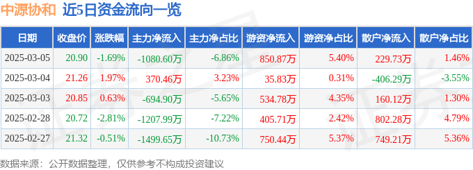 证券之星消息,截至2025年3月5日收盘,中源协和(600645)报收于20.9元,下跌1.69%,换手率1.61%,成交量7.53万手,成交额1.57亿元。